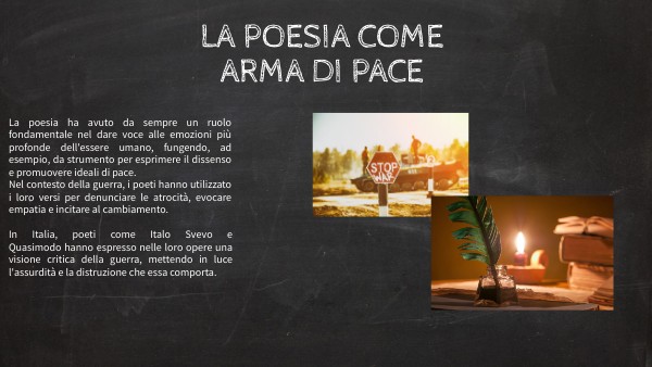 La poesia ha avuto da sempre un ruolo fondamentale nel dare voce alle emozioni più profonde dell'essere umano, fungendo, ad esempio, da strumento per esprimere il dissenso e promuovere ideali di pace. Nel contesto della guerra, i poeti hanno utilizzato i loro versi per denunciare le atrocità, evocare empatia e incitare al cambiamento.