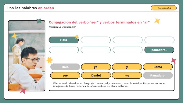 Conjugacion del verbo "ser" y verbos terminados en "ar"