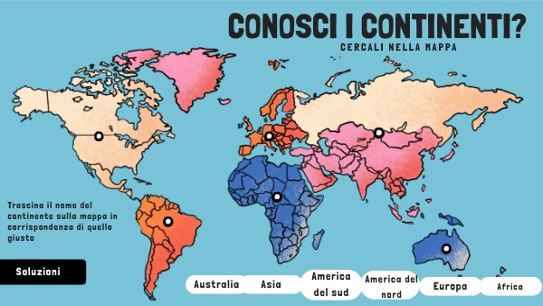 Trascina il nome del continente sulla mappa in corrispondenza di quello giusto