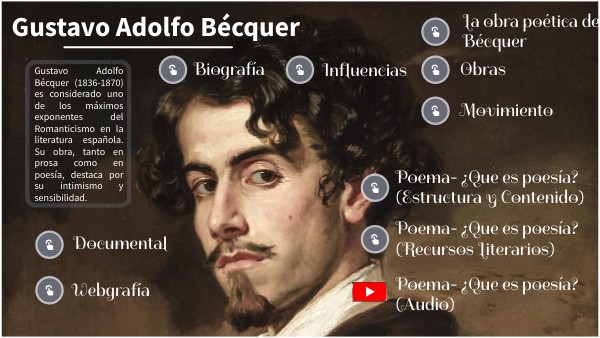 Bibliografía- https://www.cervantesvirtual.com/portales/gustavo_adolfo_becquer/autor_biografia/ Influencias- https://www.biografiasyvidas.com/biografia/h/heine.htm y https://www.britannica.com/biography/Gustavo-Adolfo-Becquer Obras- https://www.cervantesvirtual.com/obra-visor/obras-de-gustavo-a-becquer--0/html/ Poema- https://www.espoesia.com/poesia/gustavo-adolfo-becquer/poema-xxi-gustavo-adolfo-becquer/ Postromanticismo- https://en.wikipedia.org/wiki/Post-romanticism