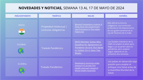NOVEDADES Y NOTICIAS, SEMANA 13 al 17 de mayo de 2024