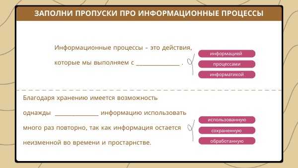 Информационные процессы - это действия, которые мы выполняем с _____________ .