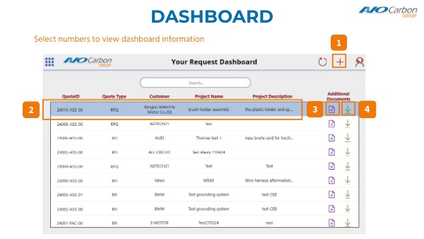 Select numbers to view dashboard information