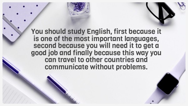 4- And _____, you will have more job opportunities if you speak English. a) second b) last c) lastly 5- _____, the advantages to learning English are multiple. a) To conclusion b) In conclusion c) To summary