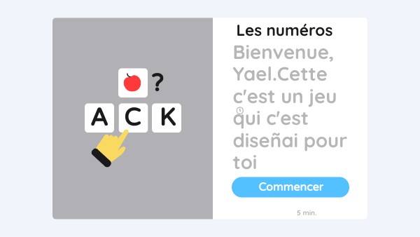 Bienvenue, Yael.Cette c'est un jeu qui c'est diseñai pour toi