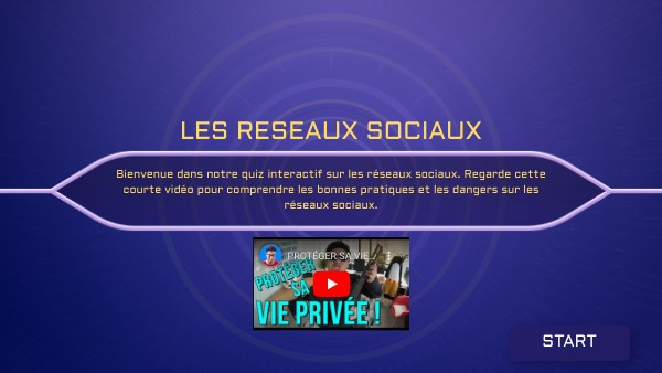 Bienvenue dans notre quiz interactif sur les réseaux sociaux. Regarde cette courte vidéo pour comprendre les bonnes pratiques et les dangers sur les réseaux sociaux.