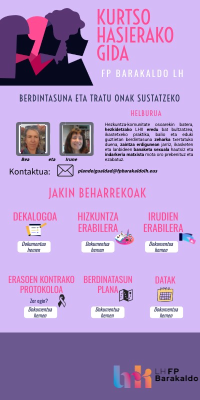 Hezkuntza-komunitate osoarekin batera, hezkidetzako LHII eredu bat bultzatzea, ikastetxeko praktika, balio eta eduki guztietan berdintasuna zeharka txertatuko duena, zaintza erdigunean jarriz, ikasketen eta lanbideen banaketa sexuala hautsiz eta indarkeria matxista mota oro prebenituz eta ezabatuz.