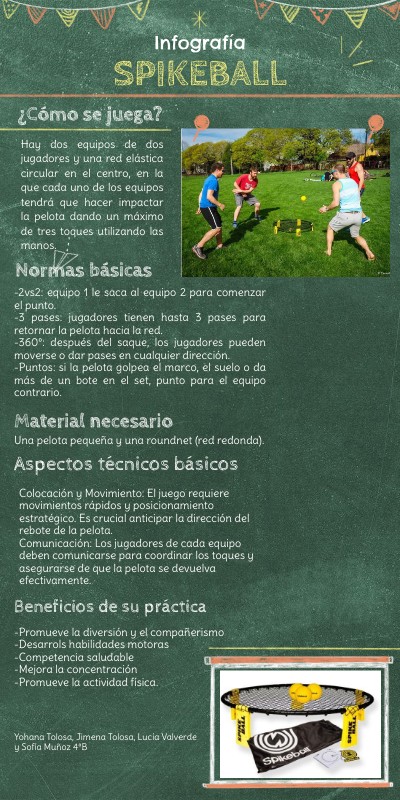 Hay dos equipos de dos jugadores y una red elástica circular en el centro, en la que cada uno de los equipos tendrá que hacer impactar la pelota dando un máximo de tres toques utilizando las manos.