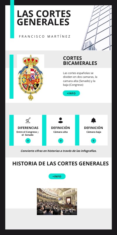 Las cortes españolas se dividen en dos camaras, la camara alta (Senado) y la baja (Congreso)