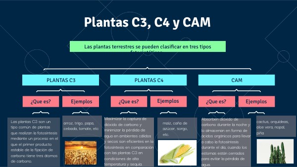 Maximizar la captura de dióxido de carbono y minimizar la pérdida de agua en ambientes cálidos y secos son eficientes en la fotosíntesis en comparación con las plantas C3 en condiciones de alta temperatura y sequía.