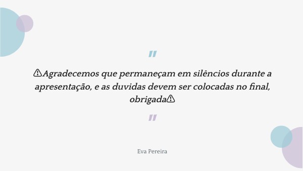 ⚠️Agradecemos que permaneçam em silêncios durante a apresentação, e as duvidas devem ser colocadas no final, obrigada⚠️