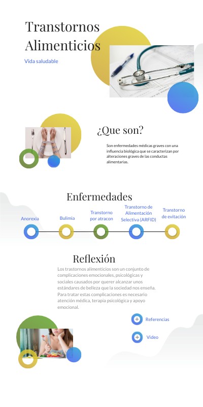 Los trastornos alimenticios son un conjunto de complicaciones emocionales, psicológicas y sociales causados por querer alcanzar unos estándares de belleza que la sociedad nos enseña. Para tratar estas complicaciones es necesario atención médica, terapia psicológica y apoyo emocional.