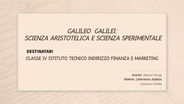 - Sequenza didattica:“Sperimentare: Galileo Galilei e il Marketing" della durata di 8 h volta alla realizzazione di un video di divulgazione letteraria