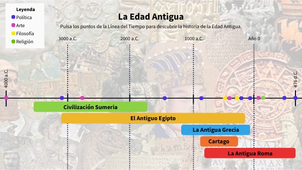 Pulsa los puntos de la Línea del Tiempo para descubrir la historia de la Edad Antigua.