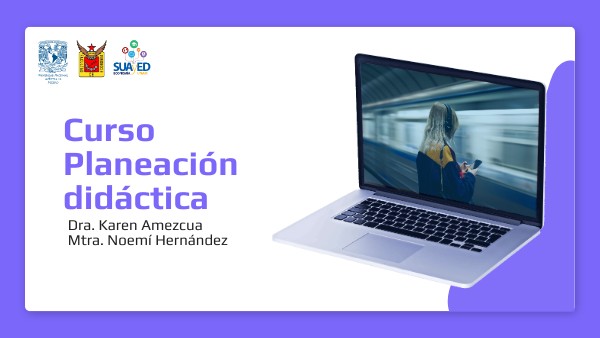 Componentes Elementos generales. En él se identifica la asignatura y la contextualiza en el Plan de Estudios, se precisan los objetivos, se especifican la metodología de trabajo, los criterios de evaluación, y se establece el reglamento interno. Planeación por unidad. Semana (numerada en orden ascendente), fechas sesión/semana, contenido temático, material de consulta, actividades a desarrollar, cronograma, criterios de evaluación ponderados. Herramientas. No se incluye en la planeación didáctica del SUAyED, sin embargo debido a la situación de emergencia por la que se atraviesa se hace necesario considerar opciones para realizar clases virtuales: por ejemplo mediante Zoom, Microsoft Teams, Skype, You Tube, Google Classroom, etc.