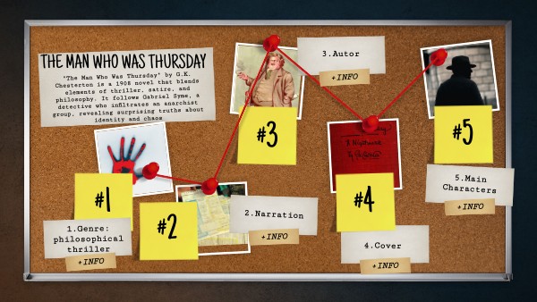 A philosophical thriller combines suspense with deep philosophical questions. "The Man Who Was Thursday" explores themes of good and evil, order and chaos, within a gripping and unpredictable plot.