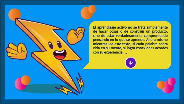 El aprendizaje activo no se trata simplemente de hacer cosas o de construir un producto, sino de estar verdaderamente comprometido pensando en lo que se aprende. Ahora mismo mientras lee este texto, si cada palabra cobra vida en su mente, si logra conexiones acordes con su experiencia …