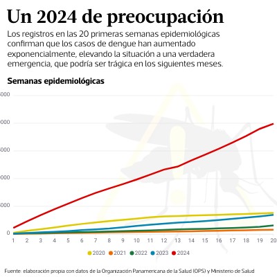 Los registros en las 20 primeras semanas epidemiológicas confirman que los casos de dengue han aumentado exponencialmente, elevando la situación a una verdadera emergencia, que podría ser trágica en los siguientes meses.