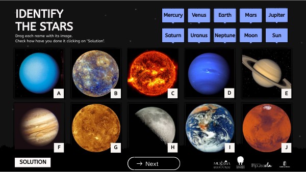 Drag each name with its image. Check how have you done it clicking on "Solution".