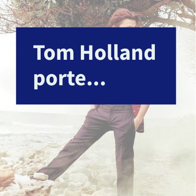 Ma célébrité est Tom Holland, il porte une pull rouge, un t-shirt blanc, un pantalon noir en coton et des chaussettes adidas blanches.