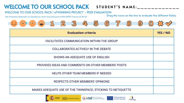 Peer Evaluation. Elaborado con Genially por Javier Gascueña para el SNA (INTEF). Licencia CC BY-SA