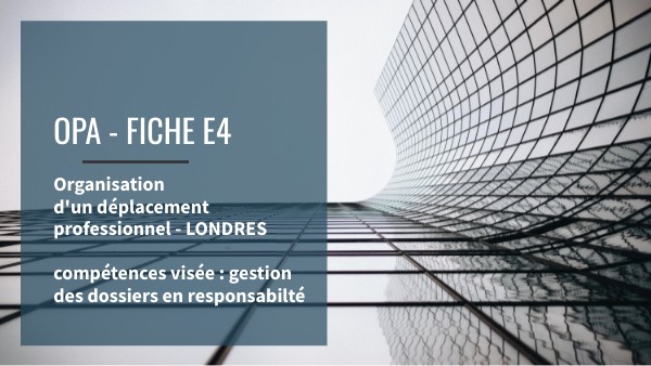 Organisation d'un déplacement professionnel - LONDRES compétences visée : gestion des dossiers en responsabilté