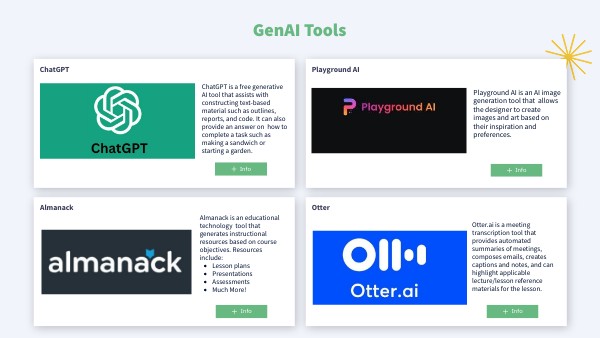Almanack is an educational technology tool that generates instructional resources based on course objectives. Resources include: