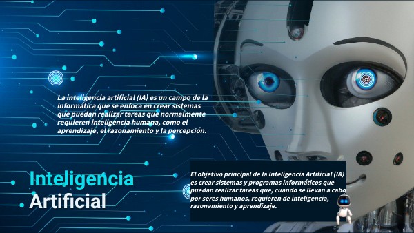 El objetivo principal de la Inteligencia Artificial (IA) es crear sistemas y programas informáticos que puedan realizar tareas que, cuando se llevan a cabo por seres humanos, requieren de inteligencia, razonamiento y aprendizaje.