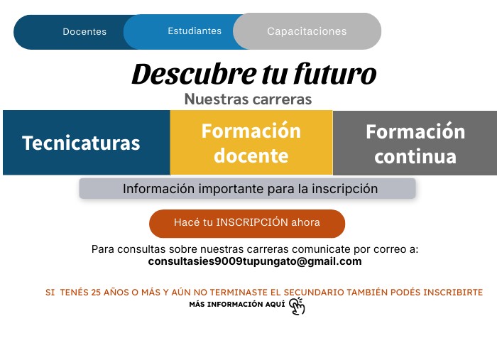 Para consultas sobre nuestras carreras comunicate por correo a: consultasies9009tupungato@gmail.com