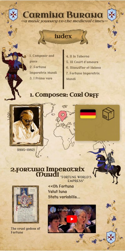 1. Composer and piece 2. Fortuna Imperatrix Mundi 3. I Primo vere