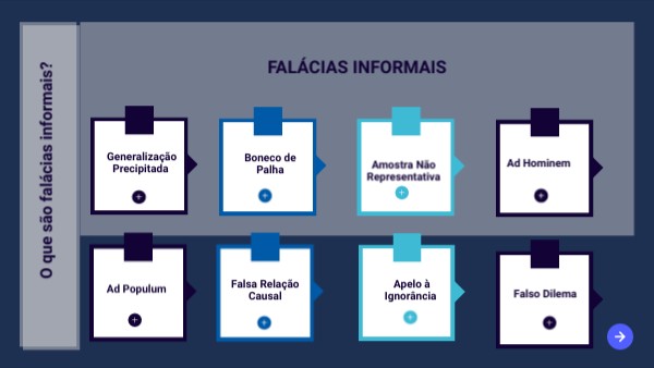 Uma falácia é um erro de raciocínio que parece ser lógico e convincente, mas que, na verdade, é enganador ou inválido. Em outras palavras, é um argumento que pode parecer correto à primeira vista, mas que, quando analisado com mais atenção, tem falhas que comprometem a sua validade. Muitas vezes, as falácias são usadas para enganar ou persuadir as pessoas, especialmente em debates, publicidade e discursos políticos. Podem ser usadas intencionalmente ou por desconhecimento. Para identificar falácias, é importante prestar atenção aos argumentos que são feitos e pensar criticamente sobre eles. Pergunta-te: "Isto faz sentido? A conclusão segue logicamente das premissas? Há factos ou evidências suficientes para apoiar esta conclusão?" Evitar falácias é importante para desenvolver um pensamento crítico e raciocínio lógico. Isto ajuda a tomar melhores decisões, construir argumentos mais sólidos e reconhecer quando alguém está a tentar enganar ou manipular.