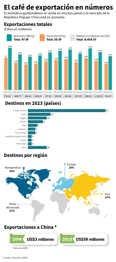 El aromático guatemalteco se vende en muchos países y el mercado de la República Popular China está en aumento.
