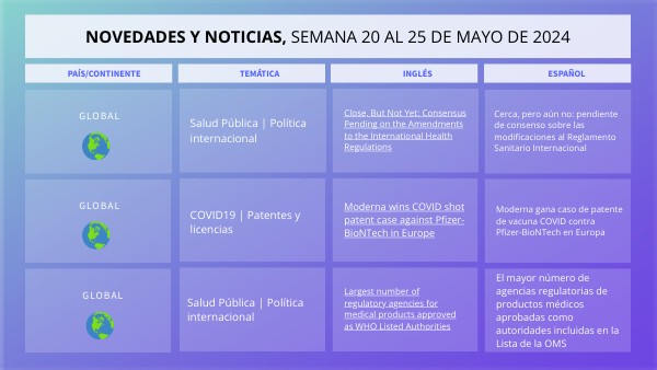 NOVEDADES Y NOTICIAS, SEMANA 20 al 25 de mayo de 2024