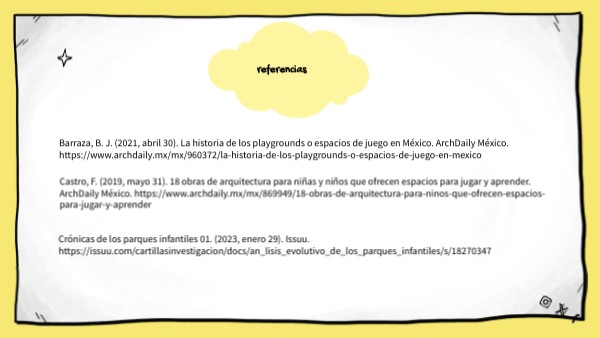 Barraza, B. J. (2021, abril 30). La historia de los playgrounds o espacios de juego en México. ArchDaily México. https://www.archdaily.mx/mx/960372/la-historia-de-los-playgrounds-o-espacios-de-juego-en-mexico