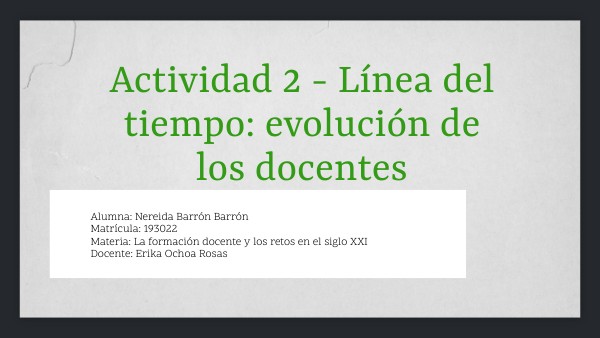 Alumna: Nereida Barrón Barrón Matrícula: 193022 Materia: La formación docente y los retos en el siglo XXI Docente: Erika Ochoa Rosas