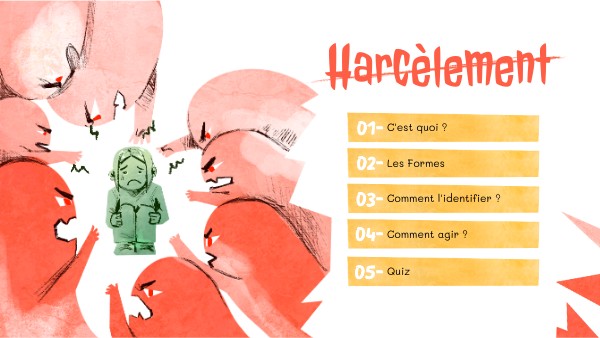 Le Harcèlement c'est embêter quelqu'un à répétitions. C'est se moquer d'une personne tout seul ou en groupe à cause d'une différence, ou juste pour "s'amuser"