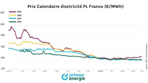 Prix Calendaire électricité PL France (€/MWh)