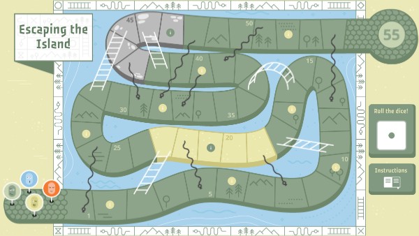 Players start with a token - which represents each of them - in the initial square and take turns rolling the die. The tokens move according to the numbering on the board, in ascending order. If, at the end of a move, a player lands on a square where a ladder begins, they move up it to the square where it ends. If, on the other hand, they land on a square where a snake's tail begins, they move down it to the square where its head ends. If a player rolls a 6, they can move twice in a single turn. If a player rolls three consecutive 6's, they must return to the initial square and cannot move their token until they roll a 6 again. The player who reaches the final square is the winner. There is a variation where, if a player is six or fewer squares away from the end, they must roll precisely the number needed to reach it. If the number rolled exceeds the number of remaining squares, the player cannot move. Some squares will have a question mark on them. Answer the question correctly and you will be able to gain a prize. Depending on the question, you will be able to gain a extra life in case of you falling on a square with a snae tail, or be able to move from 1-5 squares