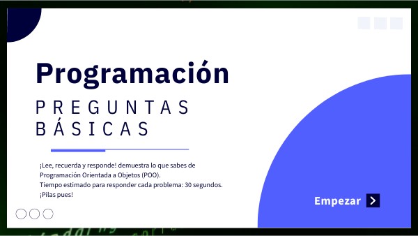 ¡Lee, recuerda y responde! demuestra lo que sabes de Programación Orientada a Objetos (POO). Tiempo estimado para responder cada problema: 30 segundos.¡Pilas pues!