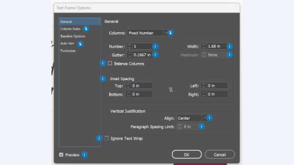 InDesign Text Frame Options
