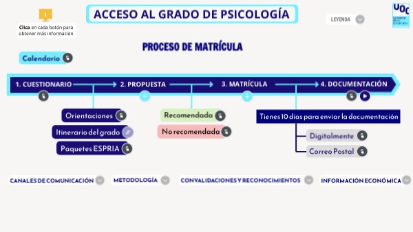- Consulta el itinerario del grado y el plan docente de cada asignatura en el Campus: Información de interés antes de hacer la matrícula / Todos los planes de estudios / Psicología (plan nuevo)