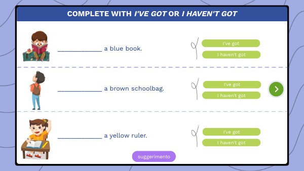 Complete with I've got or I haven't got