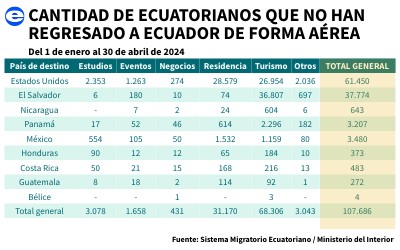 Cantidad de ecuatorianos que no han regresado a Ecuador de forma aérea