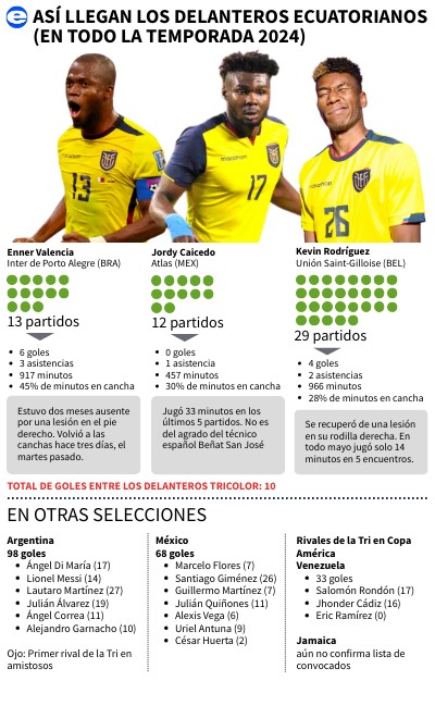 Así llegan los delanteros ecuatorianos (en todo la temporada 2024)
