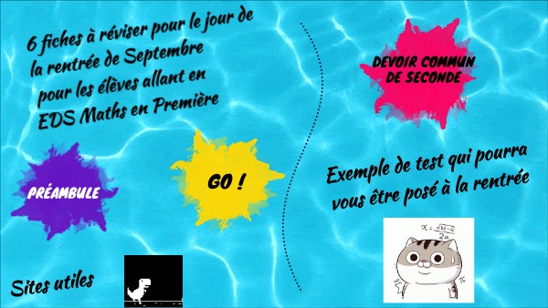 6 fiches à réviser pour le jour de la rentrée de Septembre pour les élèves allant en EDS Maths en Première