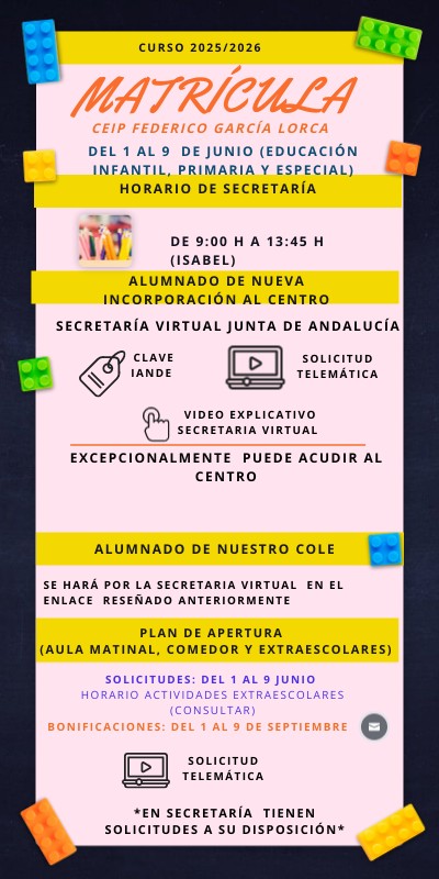 SOLICITUDES: DEL 1 AL 9 JUNIO HORARIO ACTIVIDADES EXTRAESCOLARES (CONSULTAR)