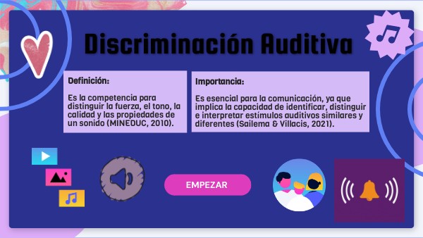 Importancia: Es esencial para la comunicación, ya que implica la capacidad de identificar, distinguir e interpretar estímulos auditivos similares y diferentes (Sailema & Villacis, 2021).