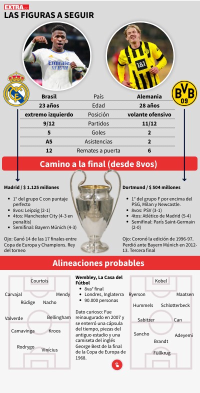Ojo: Ganó 14 de las 17 finales entre Copa de Europa y Champions. Rey del torneoAlineaciones probables