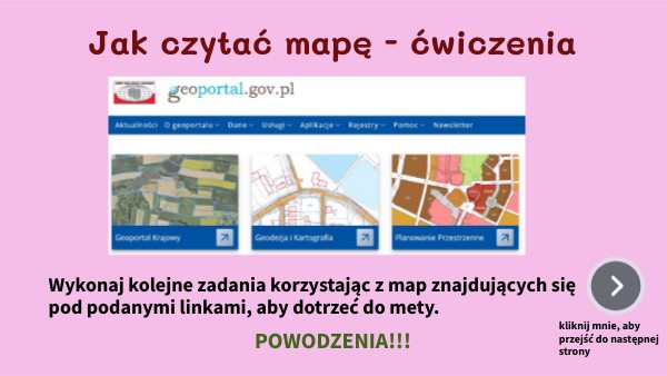 Wykonaj kolejne zadania korzystając z map znajdujących się pod podanymi linkami, aby dotrzeć do mety.
