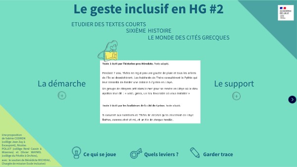 avec le soutien de Bénédicte MICHEAU, Chargée de mission Ecole Inclusive)